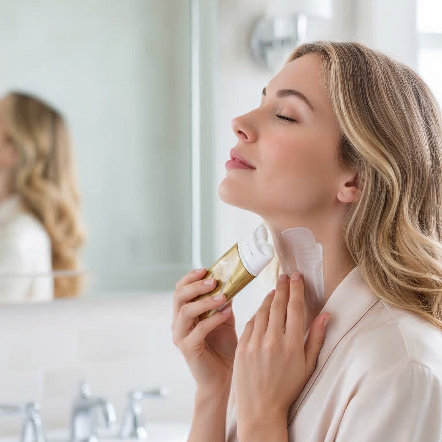Strafft sichtbar die Haut am Hals und Dekolleté